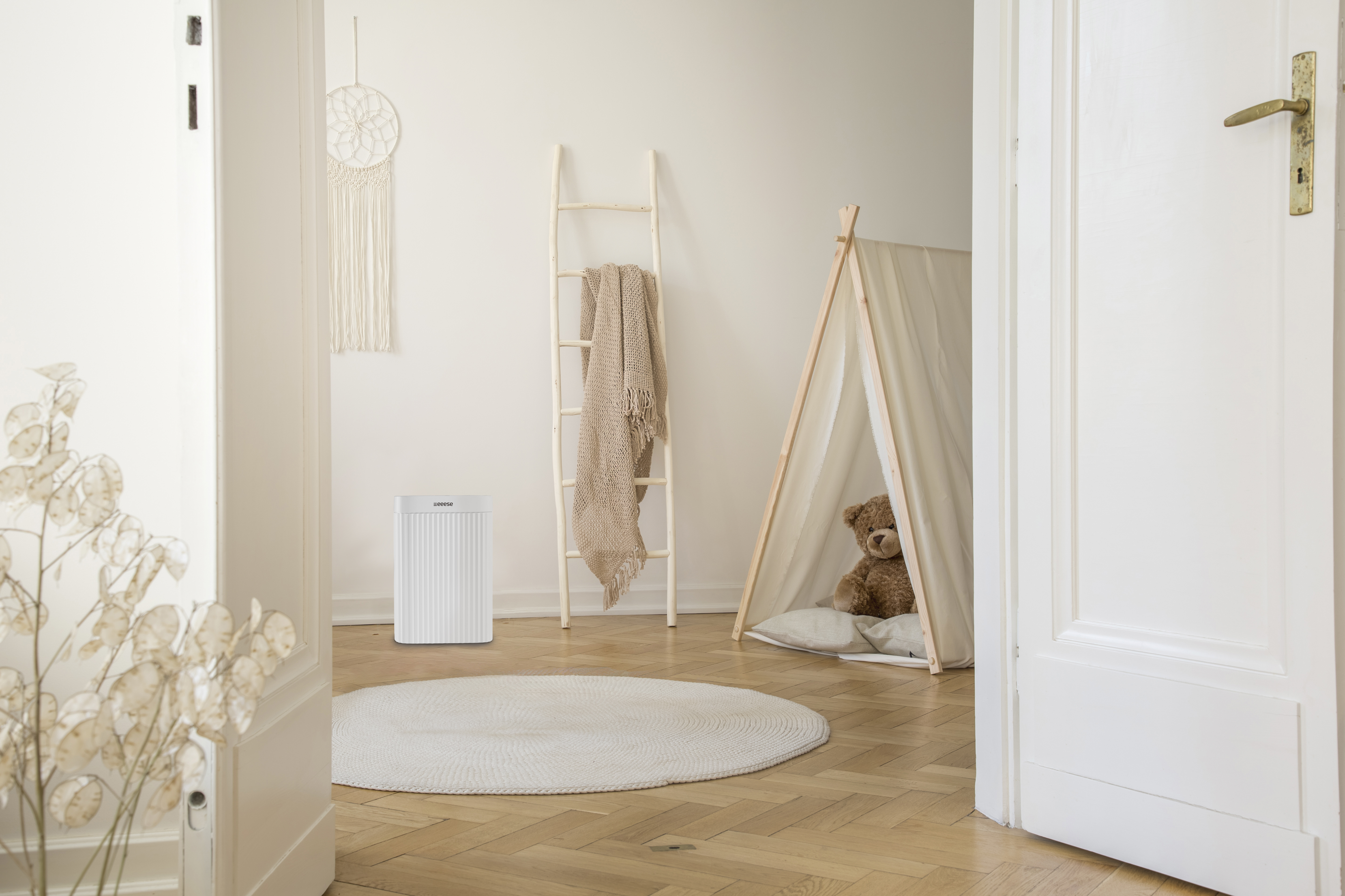 Eeese Alma 12L Luftentfeuchter / Luftreiniger ist ein leistungsstarkes 2-in-1-Hybridmodell. Luna sorgt für eine effektive Luftreinigung in HEPA-Qualität und eine gesunde Luftfeuchtigkeit in Räumen bis 50 m². Außerdem arbeitet sie extrem leise, 39 dB(A) und hat eine Entfeuchtungsleistung von 12 Liter pro Tag, bei einem Stromverbrauch von 148 Watt. Eeese Alma überzeugt mit zahlreichen Funktionen (Timer-Funktion, Wäschetrocknungsfunktion) und kann sowohl als Luftentfeuchter oder Luftreiniger eingesetzt werden. Mit ihrem schicken und kompakten Design passt sie bei jedem Interieur - kann dank IPX4-Klassifizierung auch in Nassbereichen verwendet werden. Die Bedienung ist einfach: entweder über das intelligente LED-Display mit Soft-Key oder – Alma ist WLAN-kompatibel und kann mittels APP programmiert und überwacht werden.