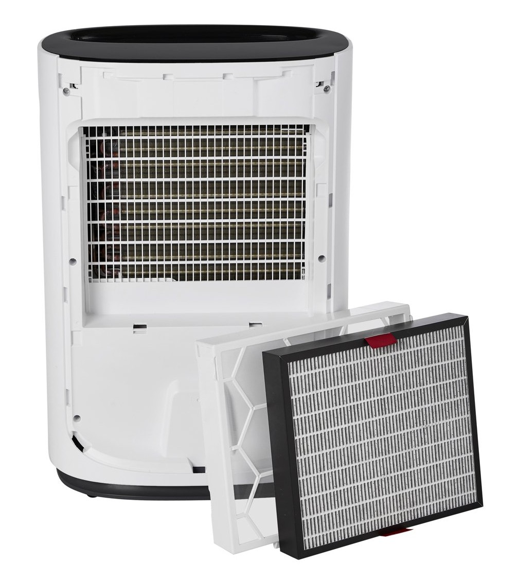 Eeese HEPA H13 + Formaldehydfilter - Ersatzfilter (Ella 24L) Original Eeese Ersatzfilter für Ihren Eeese Ella 24L Luftentfeuchter Dieser hocheffiziente HEPA‑13‑Filter fängt 99,97 % aller Partikel größer als 0,3 Mikrometer aus der Luft ein – zum Vergleich: Viele Bakterien liegen typischerweise zwischen 1 und 10 Mikrometern. Der Filter reduziert zuverlässig Staub, Pollen, Schimmelsporen, Viren, Bakterien, Schadstoffe und andere Allergene. Dadurch kann er Beschwerden bei Menschen mit Allergien, Atemwegsproblemen oder Asthma spürbar lindern und sorgt gleichzeitig für ein sauberes, gesundes und angenehmes Raumklima für die ganze Familie. Dieser Filter wurde entwickelt, um nicht nur Staub und andere Allergene aus der Luft zu filtern, sondern auch Formaldehyd. Formaldehyd ist eine Substanz, die unter anderem in Farbe und Klebstoff vorkommt und oft in der Luft bleibt und einen starken Geruch hat. Dieser Filter kann Formaldehyd aufnehmen und so die Luftqualität in Innenräumen deutlich verbessern. Vorteile des Filters: Allergien im Griff: HEPA-Filter bieten Allergikern einen hervorragenden Schutz. Durch das Filtern (Einfangen) von Allergenen wie Pollen und Tierhaaren können HEPA-Filter Allergiesymptome deutlich reduzieren und Allergikern Linderung verschaffen. Verbesserte Luftqualität bei Asthma: Menschen mit Asthma können von HEPA-Filtern profitieren, da diese zur Reduzierung von Asthma auslösenden Stoffen wie Hausstaubmilben und Schwebstaub in der Luft beitragen. Bessere Raumluftqualität: HEPA-Filter tragen zu einer besseren Raumluftqualität bei, indem sie Schadstoffe aus der Luft entfernen. Das Ergebnis ist ein komfortableres und gesünderes Zuhause.. Saubereres und staubfreies Zuhause: HEPA Filter unterstützen Sie dabei, Ihr Zuhause sauberer und staubfreier zu halten, da sie Staubpartikel einfangen und verhindern, dass sich diese auf Oberflächen absetzen. Schützt auch den Luftbefeuchter vor Staub und anderen Partikeln, verlängert die Lebensdauer und gewährleistet die Effizienz. Merkmale: HEPA H13-Filter: Wirksam gegen luftgetragene Partikel und sehr effektiv beim Filtern von Partikeln in der Luft, einschließlich Staub, Pollen, Tierhaaren, Schimmelpilzsporen und sogar Bakterien und Viren. Das Ergebnis ist eine sauberere und gesündere Luft. HEPA-Filter fangen Bakterien und Viren wirksam ein und entfernen sie, wodurch das Risiko der Übertragung von Krankheiten durch die Luft verringert wird. Formaldehyd-Filter: Dieser leistungsstarke Ersatz-Filter ist 4 cm dick und im Einzelpack erhältlich. Wartung und Austausch ist einfach Für Ihren Eeese Ella 24L Luftentfeuchter und Luftreiniger Kontrollieren Sie den Filter regelmäßig. Nur so ist eine optimale Leistung gewährleistet. Natürlich können Sie den Filter auch in der Zwischenzeit reinigen: Der HEPA-Filter kann durch Ausklopfen (Schütteln) von Schmutz befreit werden. Mit der Zeit verlieren die Fasern im Inneren des Filters jedoch ihre Funktion und der Filter verstopft durch den Staub. Unsere Experten empfehlen daher, den Filter mindestens 1x pro Jahr zu wechseln!