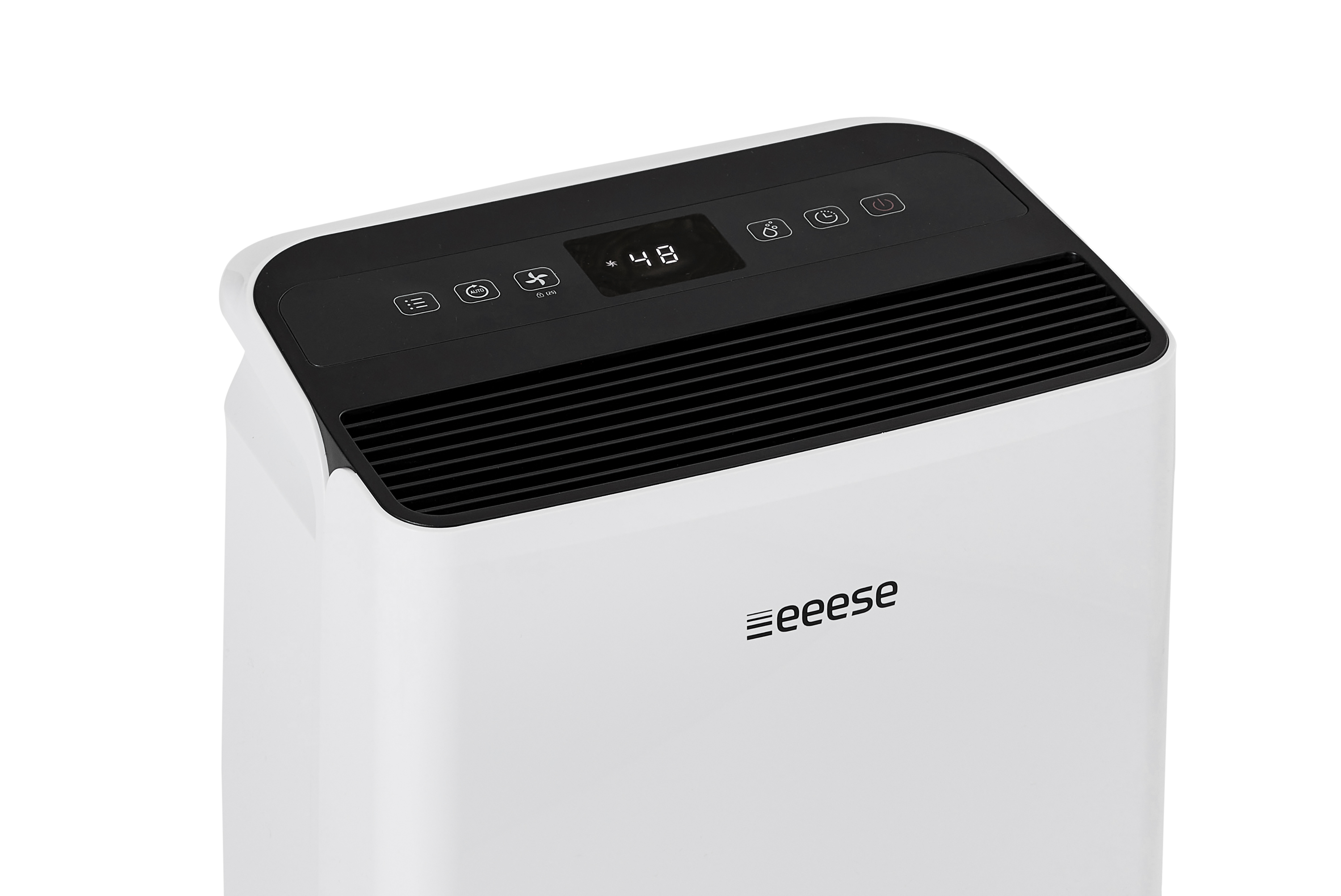 Eeese Emma 12L Luftentfeuchter ist ein kleines und kompaktes Gerät, das mit zahlreichen Funktionen ausgestattet ist. Emma reduziert in Bereichen bis 50 m² die überschüssige Feuchtigkeit (12 Liter / Tag). Dieser Eeese Luftentfeuchter arbeitet sehr leise und energieeffizient. Der optional erhältliche HEPA-Filter macht aus Emma ein 2-in-1-Hybrid-Gerät, das sowohl als Luftentfeuchter als auch Luftreiniger verwendet werden kann. Und mit Emmas praktischer Wäschetrocknungsfunktion wird Ihre Kleidung besonders schnell trocken - energieeffizient und umweltfreundlich. Emma für eine perfekte Kontrolle der Luftfeuchtigkeit in privaten oder gewerblichen Bereichen.