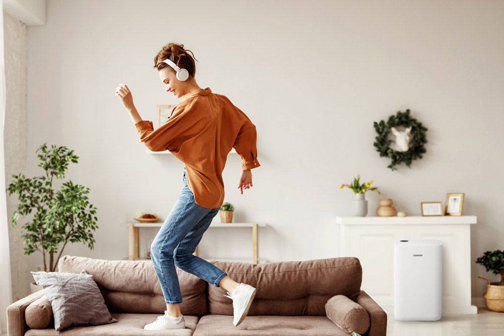 Eeese Otto 25L Luftentfeuchter ist ein leistungsstarker Luftentfeuchter, der sowohl über WLAN als auch mit Ihrem Google Assistant gesteuert werden kann. Es war nie einfacher, eine perfekte Kontrolle über die Luftfeuchtigkeit in Räumen zu haben, und er bietet weit mehr, als man von einem kompakten Luftentfeuchter für Privathaushalte erwarten würde. Otto arbeitet mit seinen nur 44 dB(A) extrem leise und hat eine zirkulierende Trocknungsfunktion für Kleidung. Das Jubiläumsmodell der Firma eeese-air care ist IPX4-klassifiziert und kann auch in Nassbereichen (Badezimmer) verwendet werden. Sein Stromverbrauch beträgt nur 290 Watt - konzipiert für Räume bis 125 m² und mit einer Entfeuchtungsleistung von 25 Litern pro Tag.
