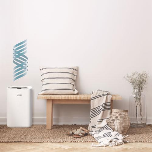 Eeese Hugo 13L Luftentfeuchter unterscheidet sich von anderen Luftentfeuchtern ähnlicher Größe durch seinen extrem niedrigen Schallpegel von nur 35 dB(A) und seinen niedrigen Stromverbrauch (145 Watt). Dieser mobile Lufttrockner von eeese kombiniert Design, Technologie und ist auch, was die Nachhaltigkeit betrifft, die richtige Wahl, dank des umweltfreundlichen R290 Kältemittels. HUGO eignet sich dank der IPX4-Klassifizierung (Sicherheitszertifikat für den Gebrauch in Nassbereichen) hervorragend für die Lufttrocknung in allen Räumen bis 65 m² (Entfeuchtungsleistung von 13 Liter pro Tag). Zur weiteren Ausstattung zählen ein waschbarer Filter, Timer-Funktion und integrierter Hygrostat.