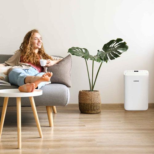 Eeese Otto 13L Luftentfeuchter ist ein leistungsstarker Luftentfeuchter, der sowohl über WLAN als auch mit Ihrem Google Assistant gesteuert werden kann. Es war nie einfacher eine perfekte Kontrolle über die Luftfeuchtigkeit in Räumen zu haben und er kann viel mehr, als man sich von einem kompakten Luftentfeuchter für Privathaushalte wünschen könnte. Otto arbeitet mit seinen nur 35 dB(A) extrem leise und hat eine zirkulierende Trocknungsfunktion für Kleidung. Das Jubiläumsmodell der Firma eeese-air care ist IPX4-klassifiziert und kann auch in Nassbereichen (Badezimmer) verwendet werden. Sein Stromverbrauch beträgt nur 145 Watt - konzipiert für Räume bis 60 m² und mit einer Entfeuchtungsleistung von 13 Litern pro Tag. Erhältlich in zwei Farben: Weiß und Grau (Midnight Grey).
