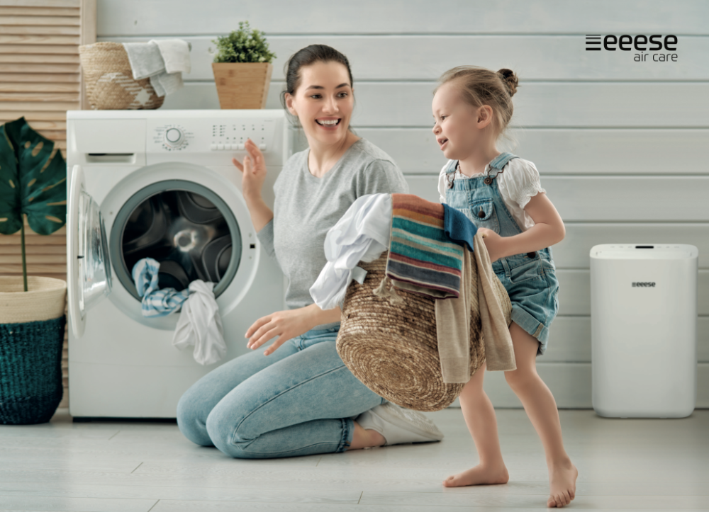 Eeese Otto 13L Luftentfeuchter - das superleise Jubiläumsmodell mit WLAN! Der Eeese Otto 13L Luftentfeuchter ist ein Jubiläumsmodell mit WLAN und sehr geringem Geräuschpegel von nur 35 dB(A)! Otto kann somit auch während der Nacht arbeiten, ohne Ihren Schlaf zu stören (Sleep-Mode-Funktion). Dieser Lufttrockner erfüllt alle Erwartungen, die man von einem kompakten Gerät für den privaten Gebrauch erwartet. Mit seiner Wäschetrockner-Funktion hilft er in vielen Haushalten, die Wäsche schnell und schonend zu trocknen. Otto ist die ideale Alternative zum Wäschetrockner - praktischer, sparsamer und umweltfreundlicher mit einem Stromverbrauch von unter 145 Watt! Er ist ideal für Räume bis 60 m² und hat eine Entfeuchtungsleistung von 13 Litern pro Tag. Eeese Otto Luftentfeuchter ist IPX4-klassifiziert und kann bedenkenlos in Nassbereichen wie Dusche, Bad usw. eingesetzt werden. Gerade in diesen Bereichen ist die Luftfeuchtigkeit sehr hoch und der Eeese Otto Luftentfeuchter sorgt schnell für eine gesunde Luftfeuchtigkeit und verhindert die Bildung von Kondenswasser und Schimmel. Die automatische Feuchtigkeitsregulierung ermöglicht eine selbstständige Kontrolle und Regulierung der Raumluftfeuchte.Über das LCD-Display kann die gewünschte Luftfeuchtigkeit eingestellt und sichergestellt werden, dass die gewünschte Luftfeuchtigkeit erreicht wird. Mit der praktischen Timerfunktion (Zeitschaltuhr) können Sie steuern, wann der Luftentfeuchter aktiv sein soll (automatisches Ein-/Ausschalten). Diese Einstellungen werden gespeichert und müssen bei der nächsten Verwendung nicht erneut eingegeben werden. Das integrierte WLAN ermöglicht die Steuerung von OTTO über Ihr Smartphone oder Tablet, eine praktische und flexible Möglichkeit, um den Luftentfeuchter auch auf Abstand bedienen zu können. OTTO ist auch mit Google Assistant kompatibel. Der Wassertank von Otto hat ein Fassungsvermögen von 2,3 Litern und ist mit einer automatischen Abschaltautomatik bei vollem Tank ausgestattet. Selbstverständlich ist auch ein permanenter Kondensatanschluss möglich. Das hat den Vorteil, dass Sie Ihren Raum entfeuchten können, ohne sich um einen vollen Wassertank und dessen Entleerung kümmern zu müssen. Der Eeese Otto 13L Luftentfeuchter lässt sich mit Hilfe der perfekt in das Design integrierten Tragegriffe leicht in andere Räume transportieren. Dieser Eeese Luftentfeuchter gehört zu den beliebten Eeese-Luftentfeuchter Modellen, mit der perfekten Kombination (Synergie) zwischen solidem Wissen über das europäische Klima und die Umwelt und dem stilvollen, geradlinigem skandinavischem Design mit der neuesten Technologie. OTTO'S Merkmale Stilvolles und kompaktes Design Übersichtliche und einfach zu bedienende LED-Anzeige mit Softkey Entfeuchtungsleistung 13 Liter pro Tag WLAN - Bedienung über Ihr Smartphone, Tablet oder Google Assistant (kompatibel) Extrem leise – nur 35 dB(A) Sehr geringer Stromverbrauch – nur 145 Watt Wäschetrockner-Modus (Zirkulierende Trocknungsfunktion) Timer-Funktion Vorfilter Integrierter Ionisator IPX4-klassifiziert – geeignet zur Verwendung in Nassräumen Integrierte Handgriffe Kindersicherung Wasserbehälter: 2,3 Liter Automatisches Abschalten bei vollem Wassertank Möglichkeit eines permaneten Kondensatanschlusses Umweltfreundliches Kältemittel R290 Erhältlich in zwei Farben: Weiß und Grau (Midnight Grey). CHOOSE GREEN, go with Eeese Klimaanlagen und Luftentfeuchter von eeese enthalten das Kältemittel R290, ein umweltfreundlicheres Kältemittel als fluorierte Gase (FKW), die bisher als Kältemittel in Klimaanlagen, Luftentfeuchtern und vielen anderen Geräten verwendet wurden. Kältemittel R290 hat ein Treibhauspotenzial (GWP) von 3, das die Ozonschicht nicht abbaut.